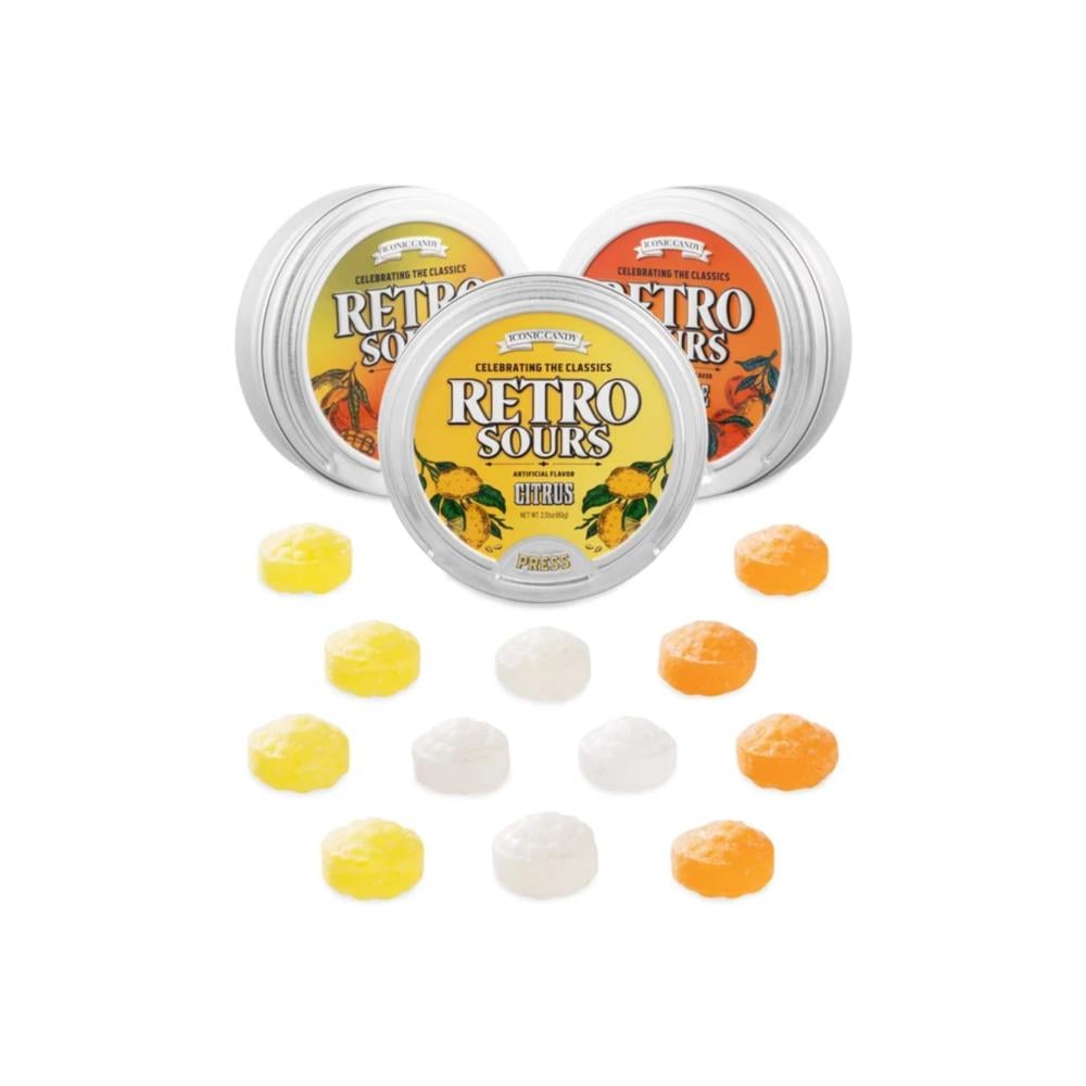 Pucker your way down memory lane with Retro Sours! With a classic recipe and an iconic circular tin, these tropical treats are a blast from the sour-dusted past!